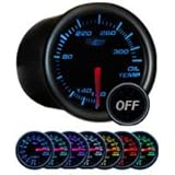 GlowShifts Tinted 7 Color Oil Temperature Gauge offers a unique combination of a high performance features including multiple backlit colors, a black face with a tinted lens and color recall technology while still offering an affordable price. This model reads the engines oil temperature between 100 and 300 degrees Fahrenheit, using an included electrical temperature sending unit. Each tinted faced gauge sport a red illuminated needle with a full 270 degree sweep of the entire gauge allowing maximum accuracy. GlowShifts ground breaking seven color LED technology allows the user to select a color of their choice to be displayed at anytime, as well as the choice of fast or slow color changing modes. The color recall technology allows the gauge to remember the previous color selected after the gauge has been powered back up. All Tinted 7 color Oil Temperature gauges come complete with a 1/8th npt male thread electrical oil temperature sender and full installation instructions. All products include a one year warranty and free technical support with each gauge.